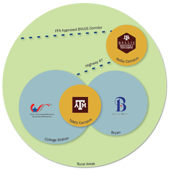 The goal of the 21st Century Mobility Test Bed is to establish a test bed at the Texas A&M-RELLIS campus and surrounding area to provide focused research, testing, evaluation, education, and training to ensure that connected and automated vehicles (CAVs), automobiles, trucks, food and package delivery vehicles, passenger shuttles, buses, scooters, dockless bicycles, unmanned air services (UAS), and other transformational services are introduced and operated safely, efficiently, and equitably in coordination with public infrastructure operators.